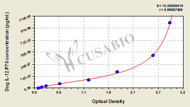 To assess the linearity of the assay, samples were spiked with high concentrations of dog IL-12/P70 in various matrices and diluted with the Sample Diluent to produce samples with values within the dynamic range of the assay. Sample Serum(n=4) 1:1 Average % 95 Range % 91-105 1:2 Average % 87 Range % 84-93 1:4 Average % 97 Range % 91-106 1:8 Average % 94 Range % 86-98 -