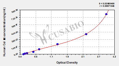 產品描述:人Ⅲ型膠原(Col Ⅲ)酶聯免疫試劑盒(CSB-E04799h)為雙抗夾心法ELISA試劑盒,定量檢測血清、血漿、組織勻漿樣本中的Col Ⅲ含量。人Ⅲ型膠原(Col Ⅲ)是人體皮膚中重要的膠原蛋白類型,主要存在于嬰兒皮膚和血管內膜。其研究背景涉及膠原蛋白的生物學功能,如支撐皮膚結構、促進細胞遷移和修復。研究機制則聚焦于其三螺旋結構、細胞粘附性及其在皮膚修復和抗衰老中的作用。試劑盒檢測范圍為12.5 ng/mL-800 ng/mL,適用于體外研究Col Ⅲ在皮膚老化、肝纖維化、心血管疾病或組織工程修復等領域的表達調控,可為探索纖維化疾病分子機制或評估抗纖維化藥物效果提供數據支持。本品僅用于科研,不用于臨床診斷,產品具體參數及操作步驟詳見產品說明書。