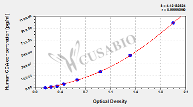 To assess the linearity of the assay, samples were spiked with high concentrations of human CDA in various matrices and diluted with the Sample Diluent to produce samples with values within the dynamic range of the assay. Sample Serum(n=4) 1:1 Average % 84 Range % 80-92 1:2 Average % 97 Range % 91-105 1:4 Average % 102 Range % 98-110 1:8 Average % 93 Range % 86-98 -