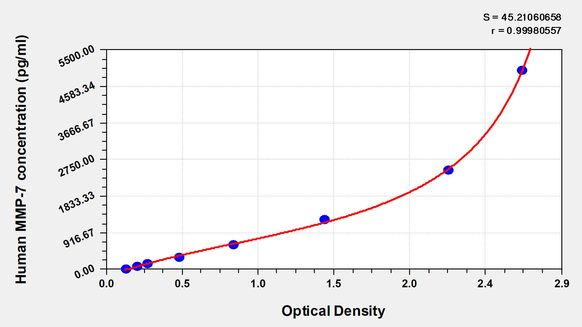 To assess the linearity of the assay, samples were spiked with high concentrations of human MMP-7 in various matrices and diluted with the Sample Diluent to produce samples with values within the dynamic range of the assay.