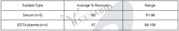 The recovery of human vaspin spiked to levels throughout the range of the assay in various matrices was evaluated. Samples were diluted prior to assay as directed in the Sample Preparation section.
