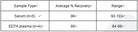 The recovery of human Cyr61 spiked to levels throughout the range of the assay in various matrices was evaluated. Samples were diluted prior to assay as directed in the Sample Preparation section.