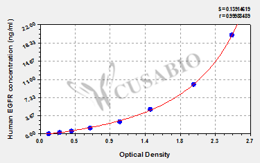 產品描述:人表皮生長因子受體(EGFR)酶聯免疫試劑盒(CSB-E12124h)為雙抗夾心法ELISA試劑盒,定量檢測血清、血漿、組織勻漿樣本中的EGFR含量。EGFR即表皮生長因子受體,是一種跨膜蛋白,在細胞生長、增殖和分化中起重要作用。其異常激活與多種癌癥發生發展密切相關。研究聚焦于其信號通路機制,通過阻斷信號傳導,研發靶向藥物抑制腫瘤生長,為癌癥治療提供新思路。試劑盒檢測范圍為0.312 ng/mL-20 ng/mL,靈敏度為0.019 ng/mL。該產品適用于基礎醫學研究中對EGFR表達水平的動態監測,如腫瘤微環境分析、藥物干預效果評估或分子信號通路研究,也可用于生物標志物篩選及疾病機制探索本品僅用于科研,不用于臨床診斷,產品具體參數及操作步驟詳見產品說明書。