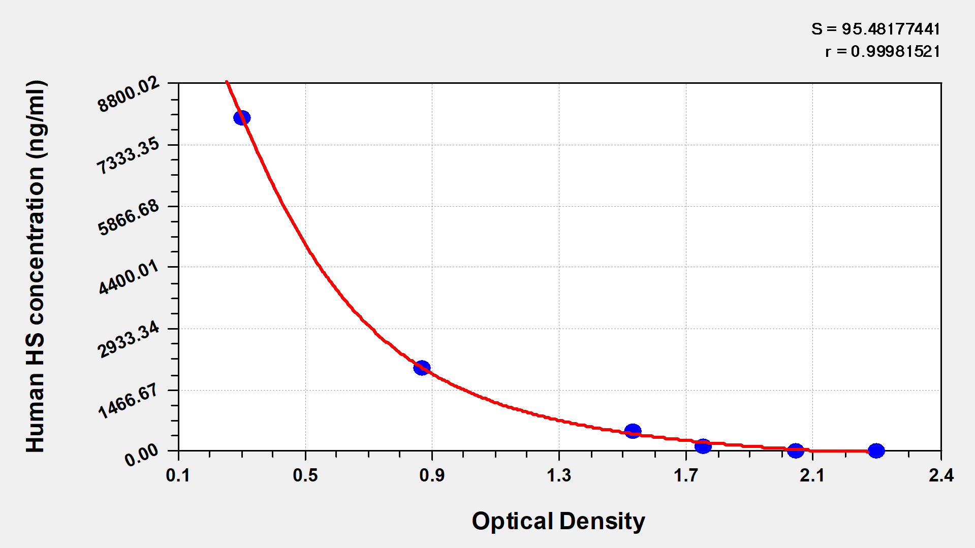 To assess the linearity of the assay, samples were spiked with high concentrations of human HS in various matrices and diluted with the Sample Diluent to produce samples with values within the dynamic range of the assay.