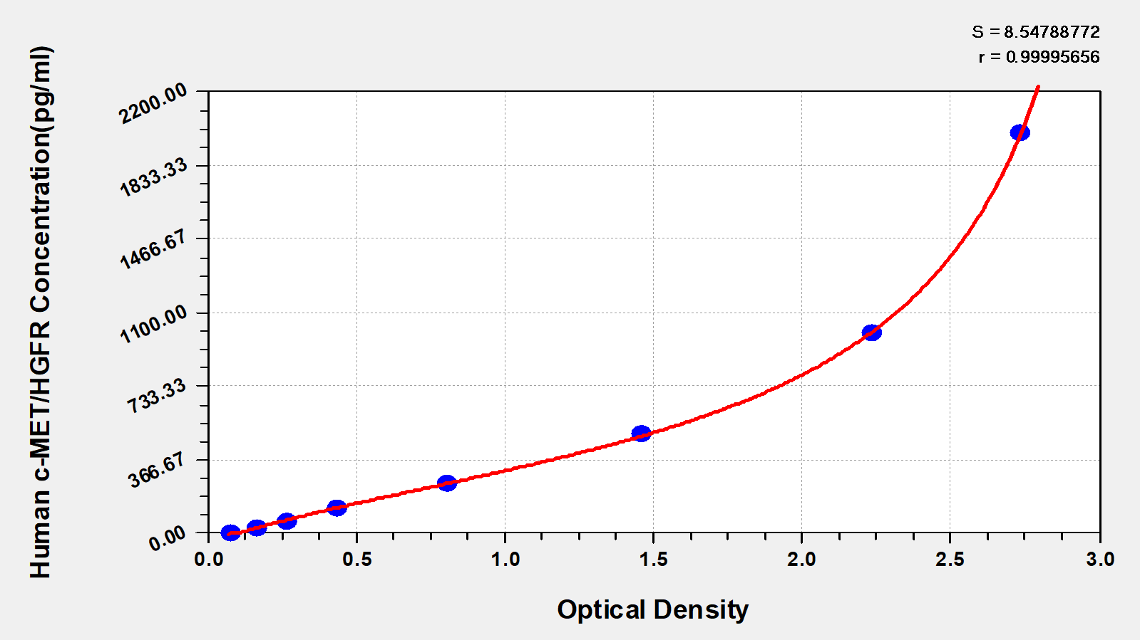 人肝細胞生長因子受體(c-MET/HGFR)酶聯免疫試劑盒(CSB-E13490h)為雙抗夾心法ELISA試劑盒,定量檢測血清、血漿、組織勻漿樣本中的MET含量。MET是一種重要靶點。它是肝細胞生長因子的受體,在細胞生長、增殖、遷移等過程起關鍵作用。其異常激活與腫瘤發生、發展及轉移密切相關。目前圍繞MET開展了諸多研究,旨在通過抑制MET來阻斷腫瘤進展,為癌癥治療提供新策略。試劑盒檢測范圍為31.2 pg/mL-2000 pg/mL,靈敏度為7.8 pg/mL。適用于腫瘤發生機制研究、靶向藥物療效評估、疾病模型構建等科研領域,尤其可用于探索c-MET/HGFR在肝癌、胃癌等惡性腫瘤中的信號通路調控作用。本品僅用于科研,不用于臨床診斷,產品具體參數及操作步驟詳見產品說明書。