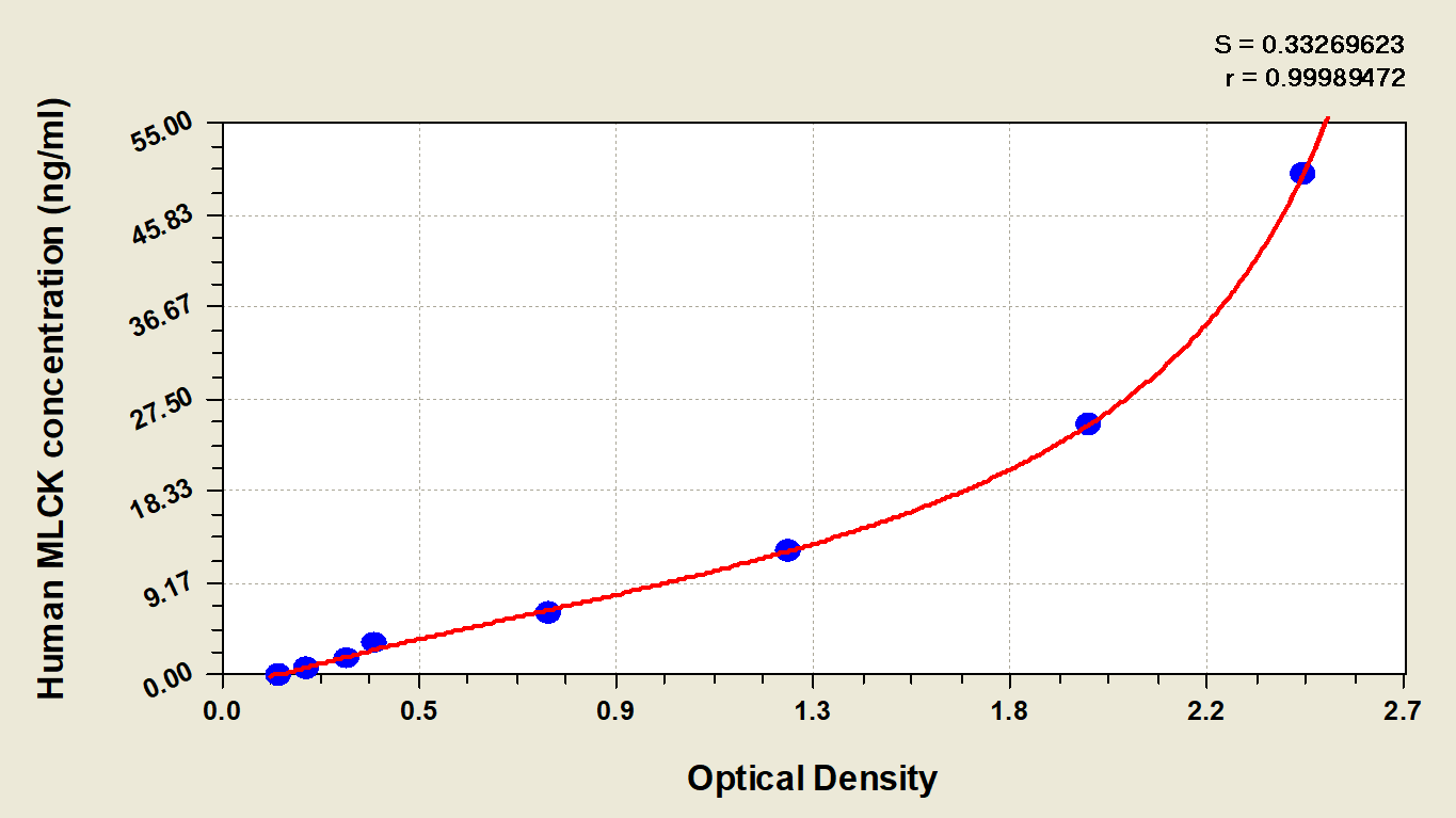 To assess the linearity of the assay, samples were spiked with high concentrations of human MLCK in various matrices and diluted with the Sample Diluent to produce samples with values within the dynamic range of the assay.