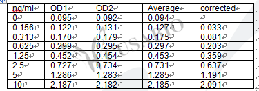 檢測范圍:0.156 ng/mL-10 ng/mL