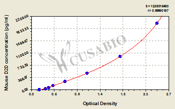 To assess the linearity of the assay, samples were spiked with high concentrations of mouse D2D in various matrices and diluted with the Sample Diluent to produce samples with values within the dynamic range of the assay.