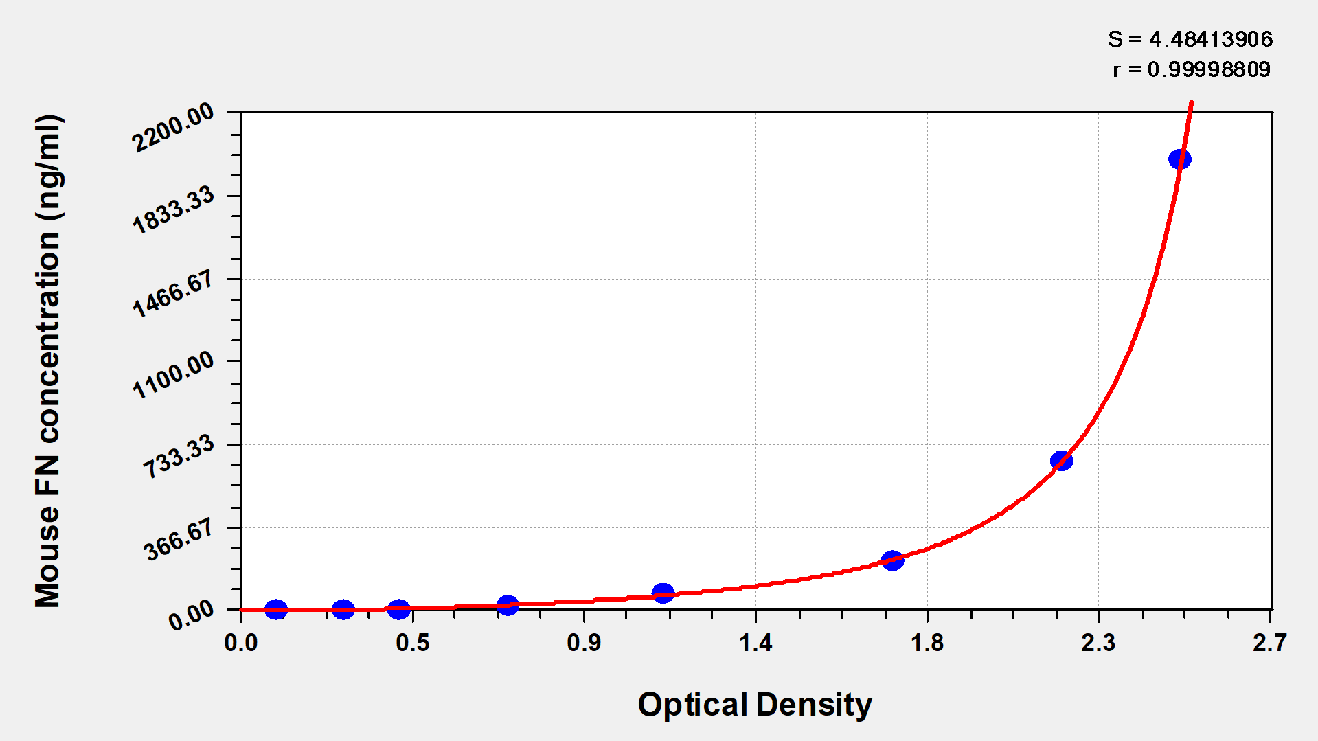 To assess the linearity of the assay, samples were spiked with high concentrations of mouse FN in various matrices and diluted with the Sample Diluent to produce samples with values within the dynamic range of the assay.