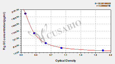 To assess the linearity of the assay, samples were spiked with high concentrations of pig GC in various matrices and diluted with the Sample Diluent to produce samples with values within the dynamic range of the assay.