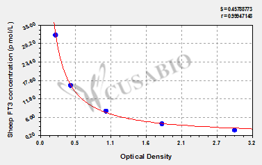 To assess the linearity of the assay, samples were spiked with high concentrations of sheep FT3 in various matrices and diluted with the Sample Diluent to produce samples with values within the dynamic range of the assay.
