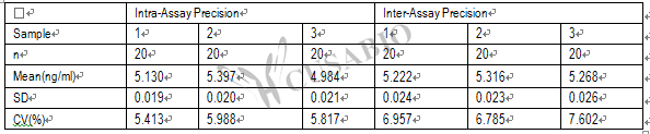 Intra-assay Precision (Precision within an assay): CV%<8%