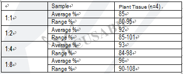 To assess the linearity of the assay, samples were spiked with high concentrations of Plant Vitamin A in various matrices and diluted with the Sample Diluent to produce samples with values within the dynamic range of the assay.