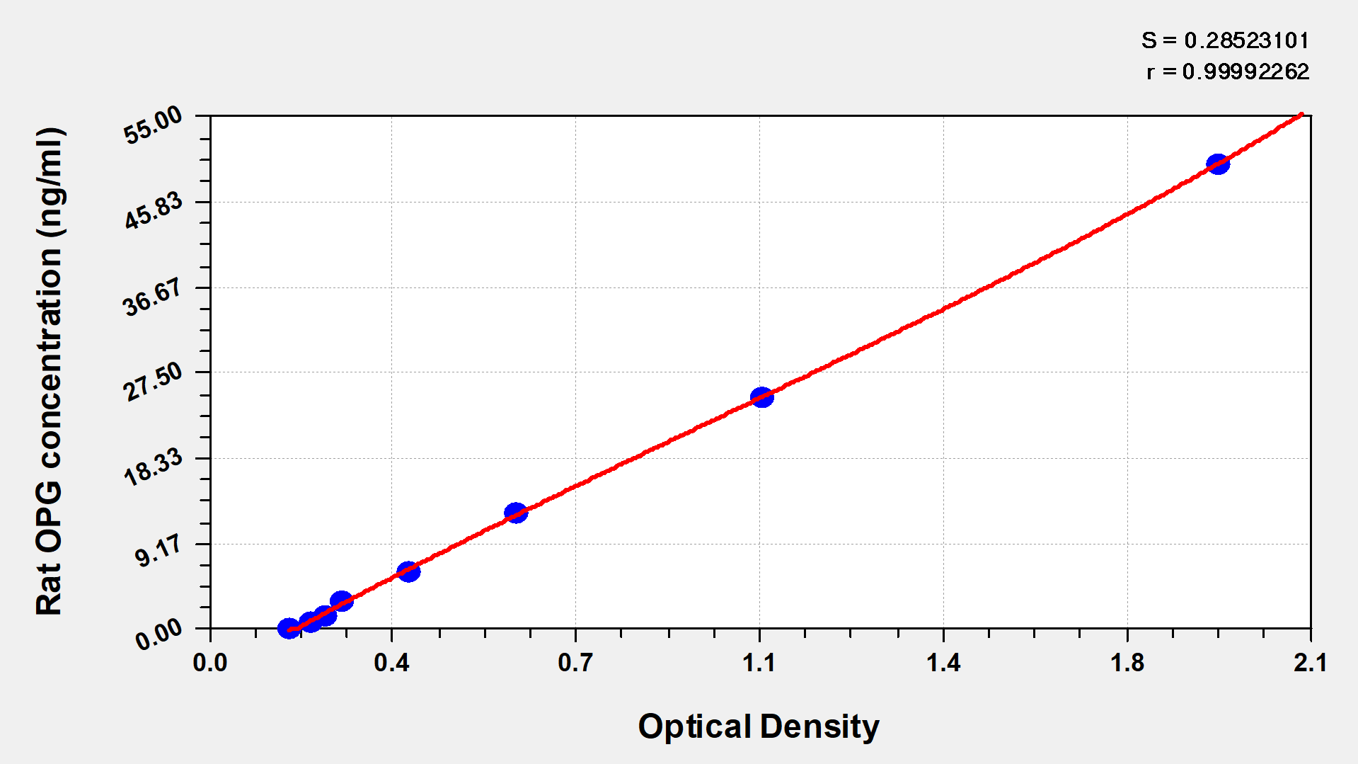 To assess the linearity of the assay, samples were spiked with high concentrations of rat OPG in various matrices and diluted with the Sample Diluent to produce samples with values within the dynamic range of the assay.