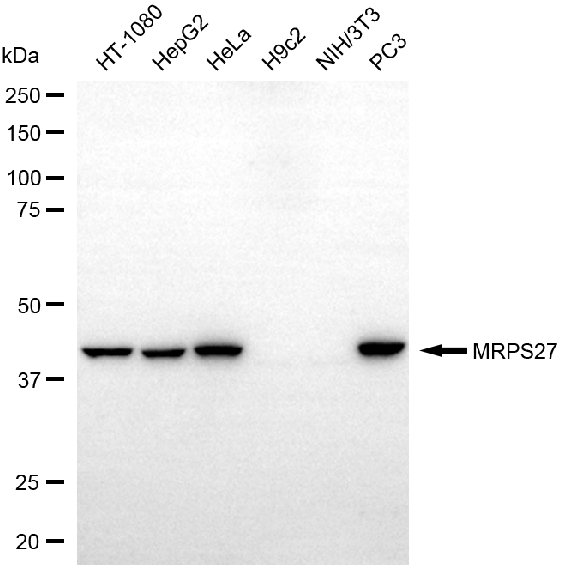 MRPS27; Mitochondrial Ribosomal Protein S27; KIAA0264; MS27; 28S Ribosomal Protein S27, Mitochondrial; Small Ribosomal Subunit Protein MS27; MRP-S27; S27mt?; Mitochondrial Small Ribosomal Subunit Protein MS27; Mitochondrial 28S Ribosomal Protein S27