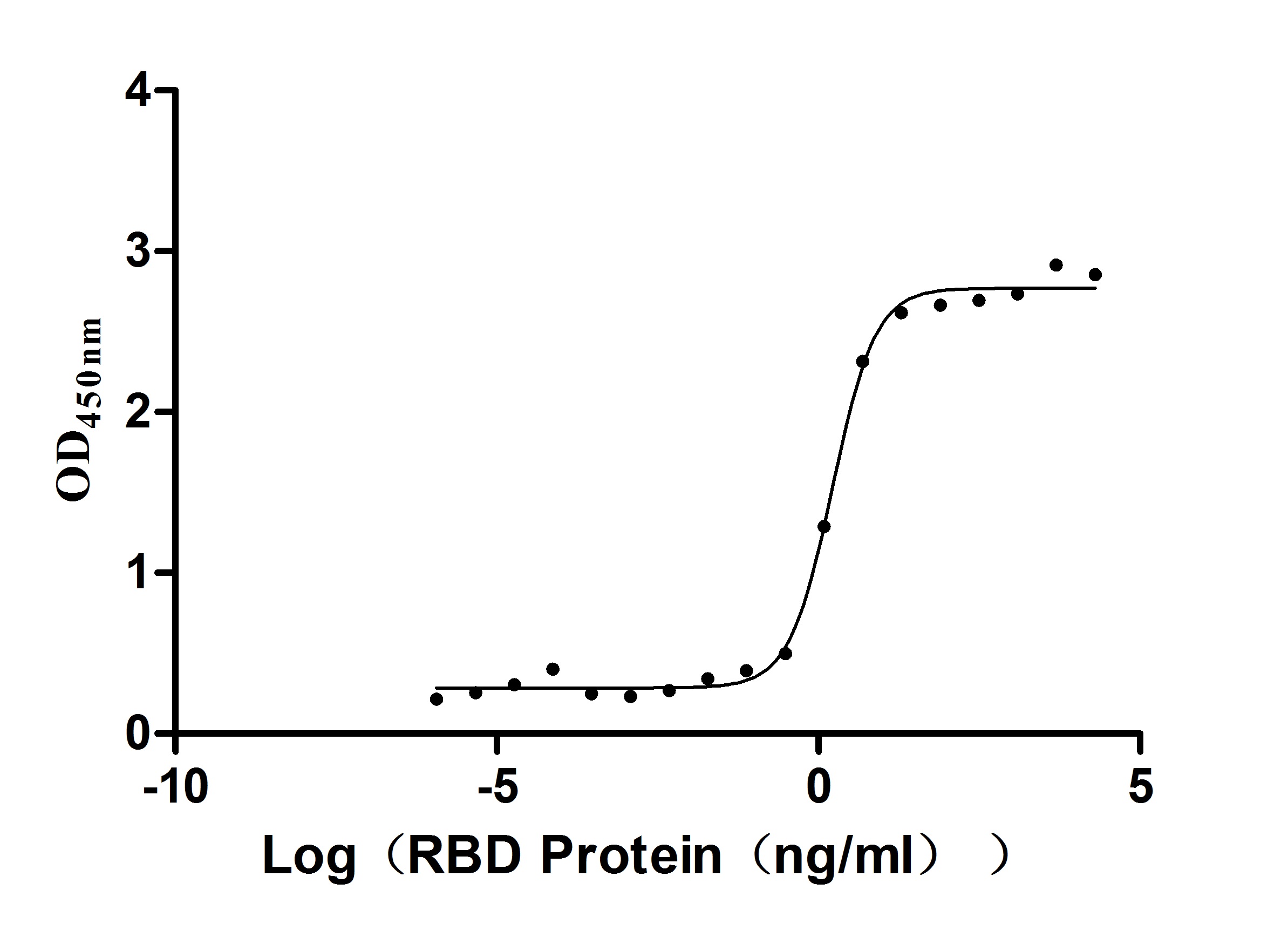 Measured by its binding ability in a functional ELISA. Immobilized SARS-CoV-2-S1-RBD (CSB-MP3324GMY1b1) at 5 μg/ml can bind human ACE2, the EC50 is 2.785-9.139 ng/ml.