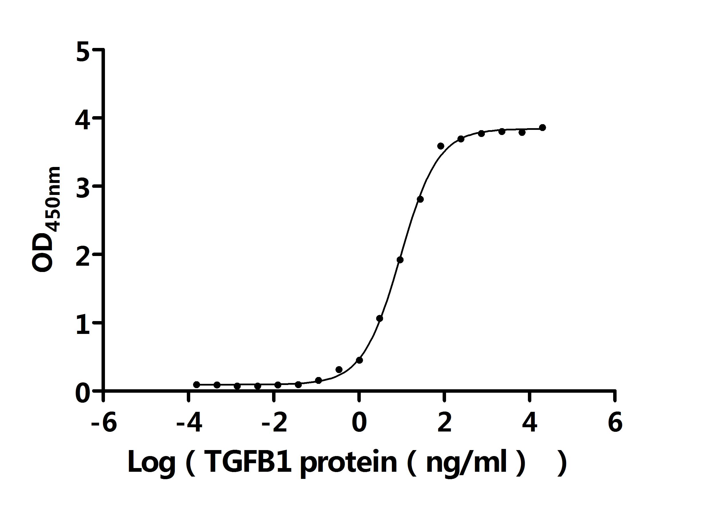 Measured by its binding ability in a functional ELISA. Immobilized Human ITGAV&ITGB6 at 2 μg/ml can bind Human TGFB1 (CSB-MP023446HU(A4)c9). The EC50 is 8.576-10.18 ng/mL. Biological Activity Assay -