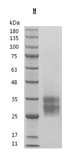 復(fù)溶:We recommend that this vial be briefly centrifuged prior to opening to bring the contents to the bottom. Please reconstitute protein in deionized sterile water to a concentration of 0.1-1.0 mg/mL.We recommend to add 5-50% of glycerol (final concentration) and aliquot for long-term storage at -20℃/-80℃. Our default final concentration of glycerol is 50%. Customers could use it as reference.