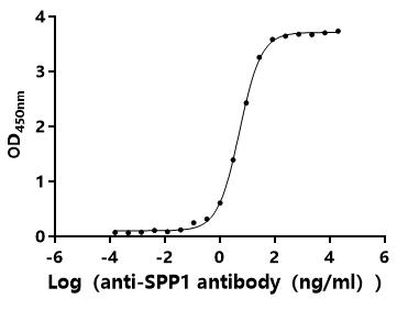 Measured by its binding ability in a functional ELISA.Immobilized Human SPP1 at 2 μg/ml can bind Anti-SPP1 recombinant antibody(CSB-RA022603MA1HU).The EC50 is 4.929-5.425 ng/mL.