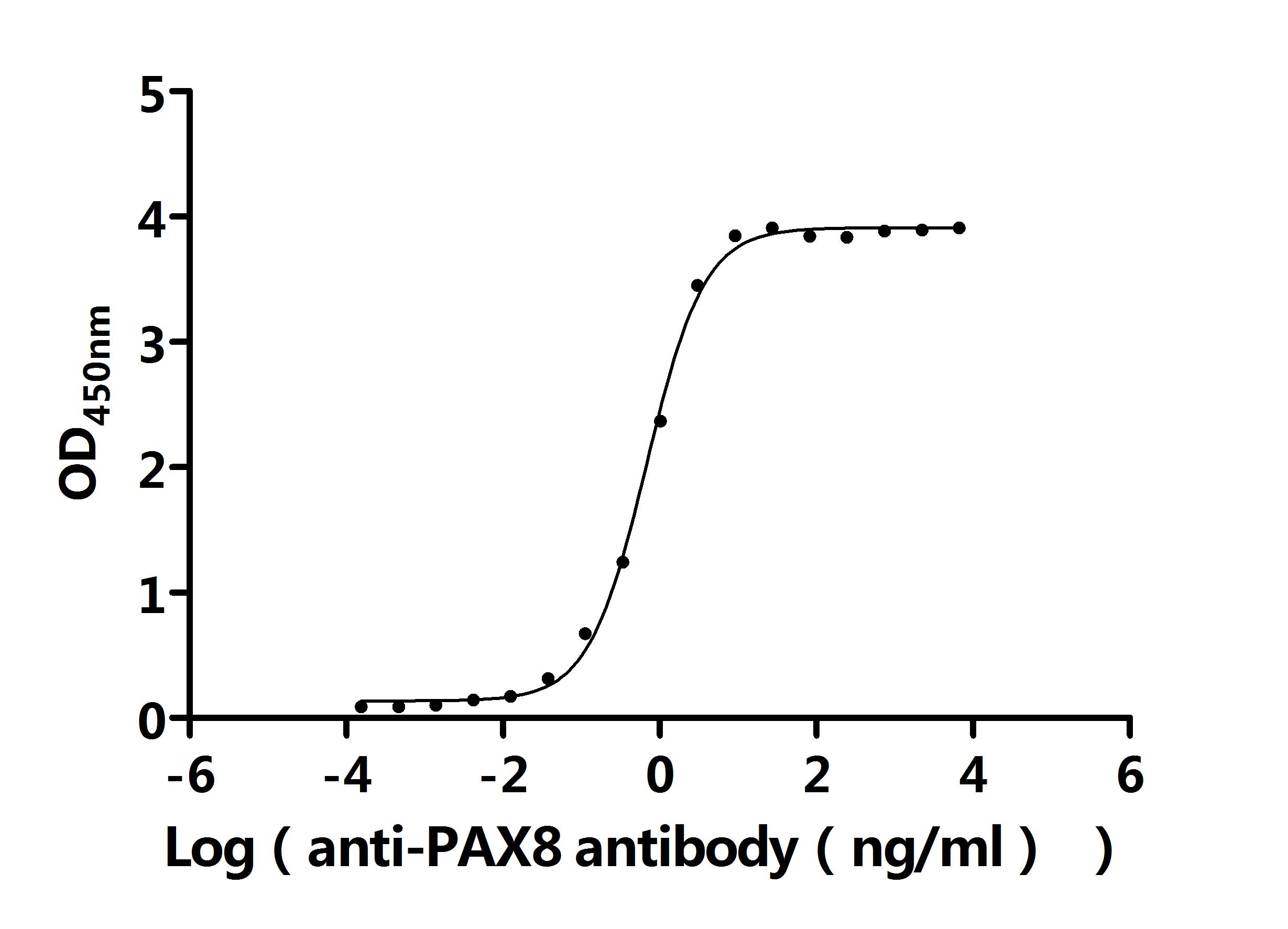 Measured by its binding ability in a functional ELISA. Immobilized Human PAX8 at 2 μg/ml can bind Anti-PAX8 recombinant antibody (CSB-RA017494MA1HU). The EC50 is 0.6290-0.7413 ng/mL. Biological Activity Assay