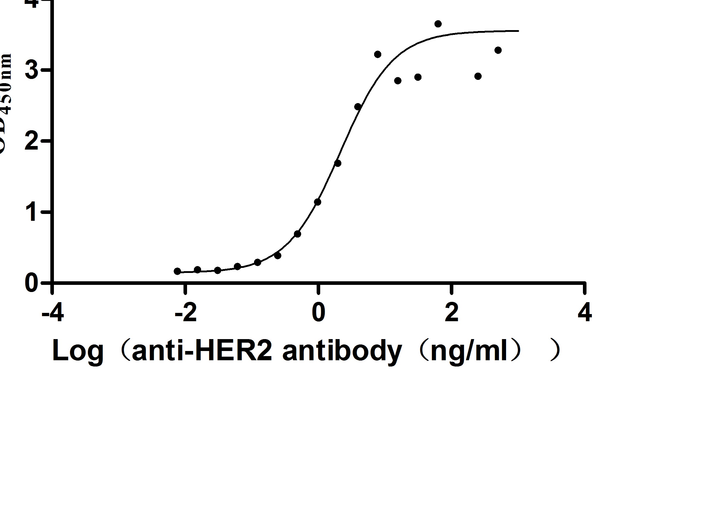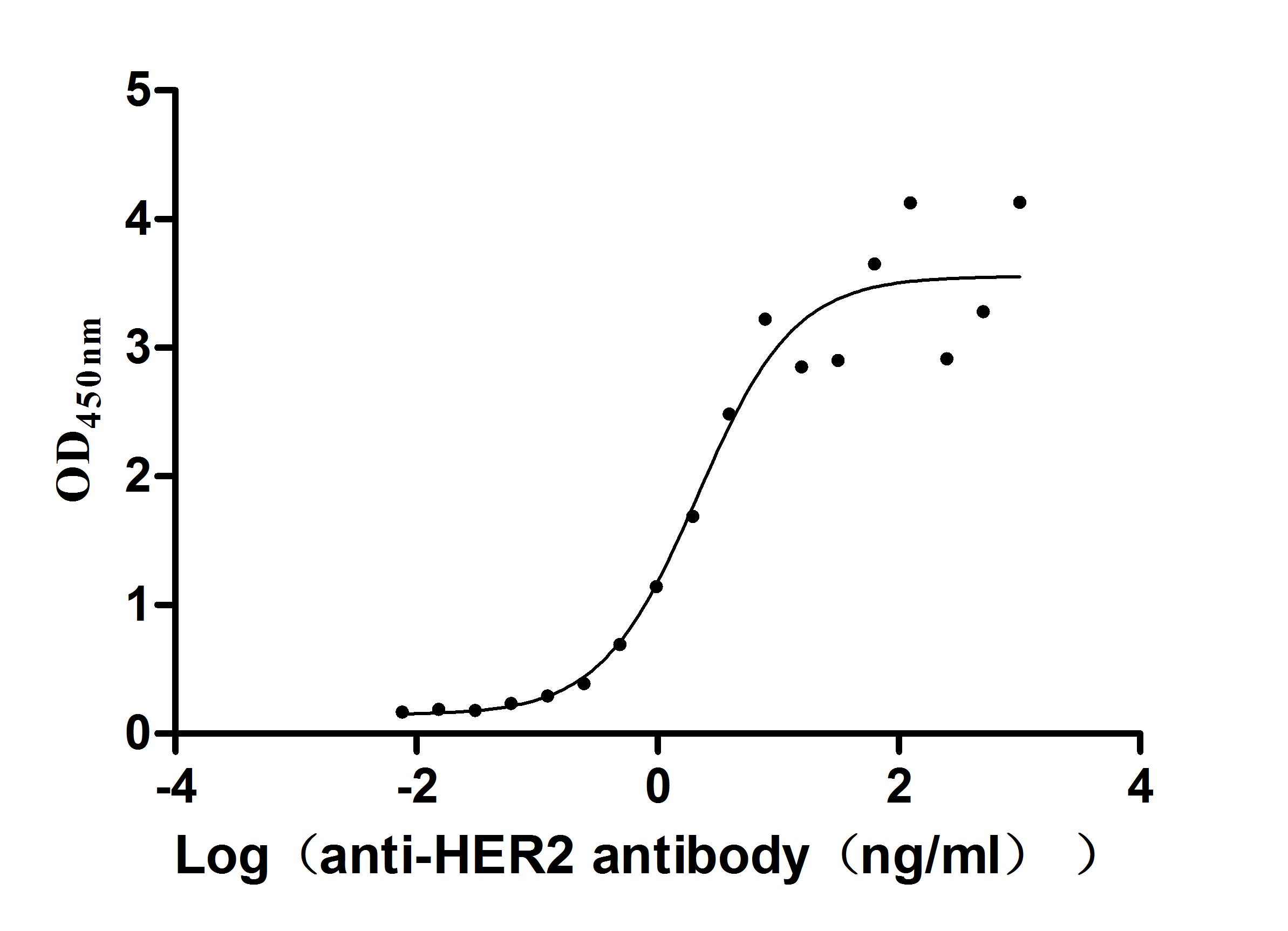 生物活性:Measured by its binding ability in a functional ELISA. Immobilized HER2 at 2 μg/ml can bind Trastuzumab, the EC50 is 2.179-2.825 ng/ml.