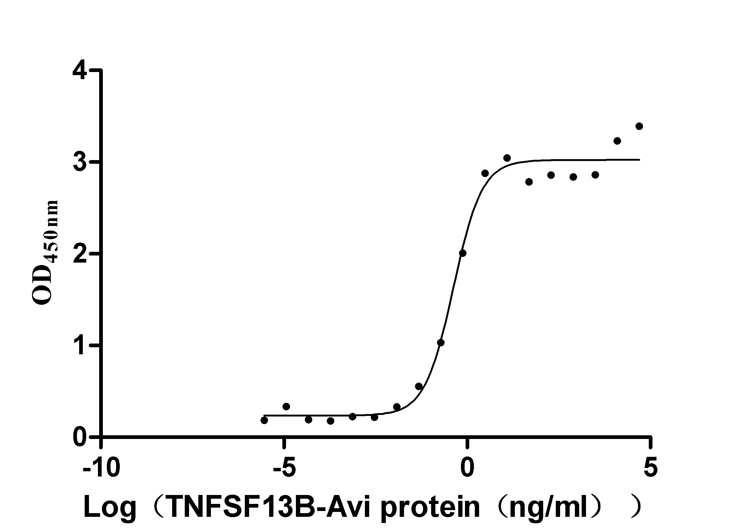 Measured by its binding ability in a functional ELISA. Immobilized human BCMA at 5 μg/ml can bind Biotinylated human TNFSF13B (CSB-MP897523HU1-B), the EC50 is 0.1752-0.3657 ng/ml. Biological Activity Assay