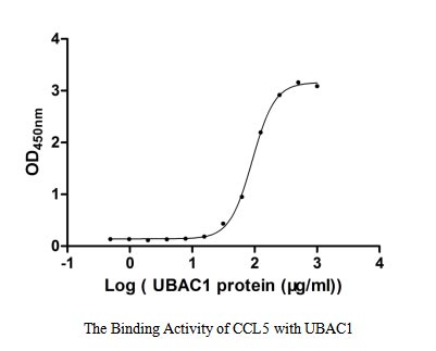 生物活性:Measured by its binding ability in a functional ELISA. Immobilized CCL5 at 2 μg/ml can bind human UBAC1, the EC50 of human UBAC1 protein is 86.67-97.25 μg/ml.