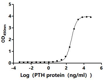 Measured by its binding ability in a functional ELISA.Immobilized Macaca fascicularis PTH1R(CSB-MP018988MOV4) at 2 μg/ml can bind Macaca fascicularis PTH. The EC50 is 346.7-417.7 ng/mL. Biological Activity Assay