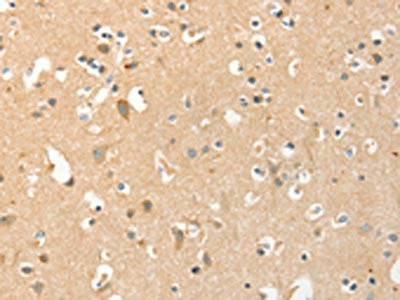 The image on the left is immunohistochemistry of paraffin-embedded Human brain tissue using CSB-PA179815(AANAT Antibody) at dilution 1/40, on the right is treated with fusion protein. (Original magnification: ×200)