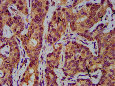 IHC image of CSB-PA883373LA01HU diluted at 1:400 and staining in paraffin-embedded human liver cancer performed on a Leica BondTM system. After dewaxing and hydration, antigen retrieval was mediated by high pressure in a citrate buffer (pH 6.0). Section was blocked with 10% normal goat serum 30min at RT. Then primary antibody (1% BSA) was incubated at 4°C overnight. The primary is detected by a biotinylated secondary antibody and visualized using an HRP conjugated SP system.