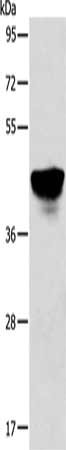 Gel: 10%SDS-PAGE, Lysate: 40 μg, Lane: A431 cells, Primary antibody: CSB-PA072974(ABHD5 Antibody) at dilution 1/250, Secondary antibody: Goat anti rabbit IgG at 1/8000 dilution, Exposure time: 5 seconds