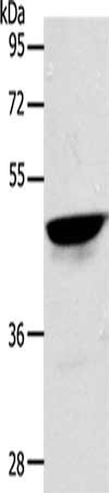 Gel: 10%SDS-PAGE, Lysate: 40 μg, Lane: MCF7 cells, Primary antibody: CSB-PA022273(ACTL8 Antibody) at dilution 1/300, Secondary antibody: Goat anti rabbit IgG at 1/8000 dilution, Exposure time: 5 seconds