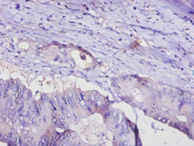 Immunohistochemistry of paraffin-embedded human colon cancer using CSB-PA07956A0Rb at dilution of 1:100