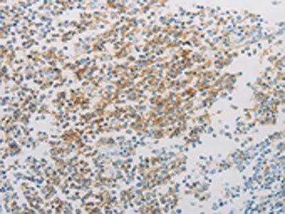 The image on the left is immunohistochemistry of paraffin-embedded Human tonsil tissue using CSB-PA988424(ADM Antibody) at dilution 1/20, on the right is treated with synthetic peptide. (Original magnification: ×200)