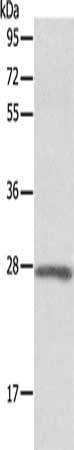 Gel: 12%SDS-PAGE, Lysate: 40 μg, Lane: Mouse heart tissue, Primary antibody: CSB-PA988424(ADM Antibody) at dilution 1/300, Secondary antibody: Goat anti rabbit IgG at 1/8000 dilution, Exposure time: 10 minutes
