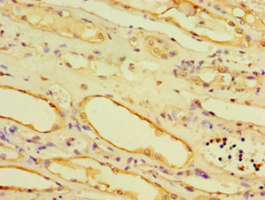 Immunohistochemistry of paraffin-embedded human kidney tissue using CSB-PA001475ESR1HU at dilution of 1:100