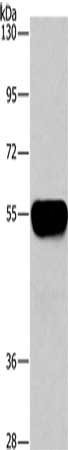Gel: 10%SDS-PAGE, Lysate: 2 μg, Lane: Human plasma tissue, Primary antibody: CSB-PA241286(AHSG Antibody) at dilution 1/1450, Secondary antibody: Goat anti rabbit IgG at 1/8000 dilution, Exposure time: 10 seconds