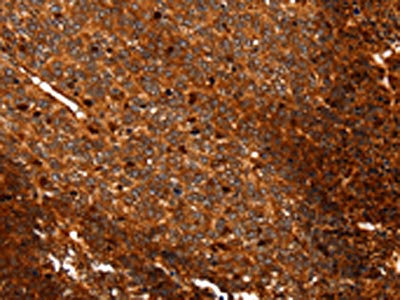 • The image on the left is immunohistochemistry of paraffin-embedded Human gastic cancer tissue using CSB-PA909976(ALDOA Antibody) at dilution 1/25, on the right is treated with fusion protein. (Original magnification: ×200)