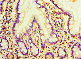 Immunohistochemistry of paraffin-embedded human small intestine tissue using CSB-PA12639A0Rb at dilution of 1:100