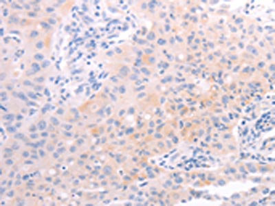 • The image on the left is immunohistochemistry of paraffin-embedded Human lung cancer tissue using CSB-PA904437(AMH Antibody) at dilution 1/30, on the right is treated with synthetic peptide. (Original magnification: ×200)
