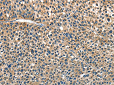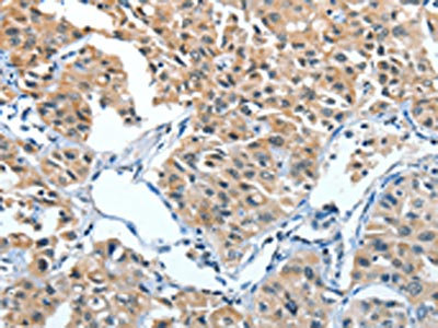 • The image on the left is immunohistochemistry of paraffin-embedded Human liver cancer tissue using CSB-PA117703(ANGPT1 Antibody) at dilution 1/30, on the right is treated with fusion protein. (Original magnification: ×200)