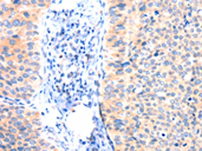 • The image on the left is immunohistochemistry of paraffin-embedded Human cervical cancer tissue using CSB-PA981926(ANK3 Antibody) at dilution 1/50, on the right is treated with synthetic peptide. (Original magnification: ×200)