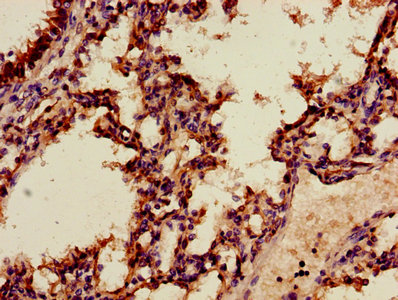 Immunohistochemistry of paraffin-embedded human lung tissue using CSB-PA001840HA01HU at dilution of 1:100