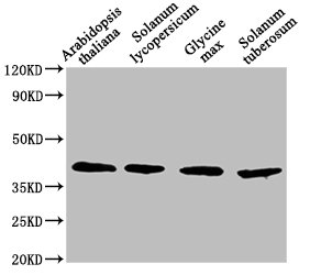 Positive WB detected in: Arabidopsis thaliana leaf tissue, Solanum lycopersicum leaf tissue, Glycine max leaf tissue, Solanum tuberosum leaf tissue