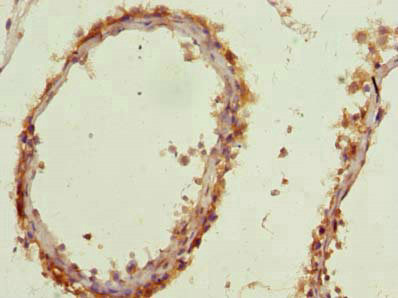 Immunohistochemistry of paraffin-embedded human testis tissue using CSB-PA897585LA01HU at dilution of 1:100
