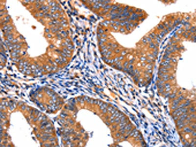 The image on the left is immunohistochemistry of paraffin-embedded Human cervical cancer tissue using CSB-PA783095(APAF1 Antibody) at dilution 1/30, on the right is treated with synthetic peptide. (Original magnification: ×200)