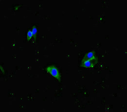• Immunofluorescent analysis of Hela cells using CSB-PA853390LA01HU at dilution of 1:100 and Alexa Fluor 488-congugated AffiniPure Goat Anti-Rabbit IgG(H+L)