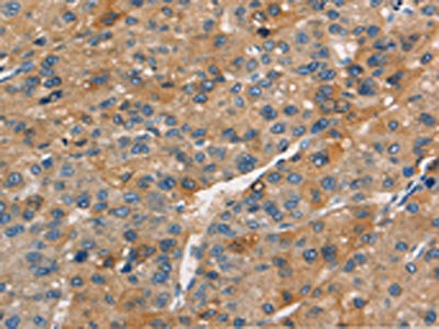 The image on the left is immunohistochemistry of paraffin-embedded Human liver cancer tissue using CSB-PA180634(APOC4 Antibody) at dilution 1/15, on the right is treated with synthetic peptide. (Original magnification: ×200)