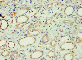 • Immunohistochemistry of paraffin-embedded human kidney tissue using CSB-PA001940ESR1HU at dilution of 1:100