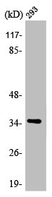 • Western Blot analysis of 293 cells using AQP4 Polyclonal Antibody